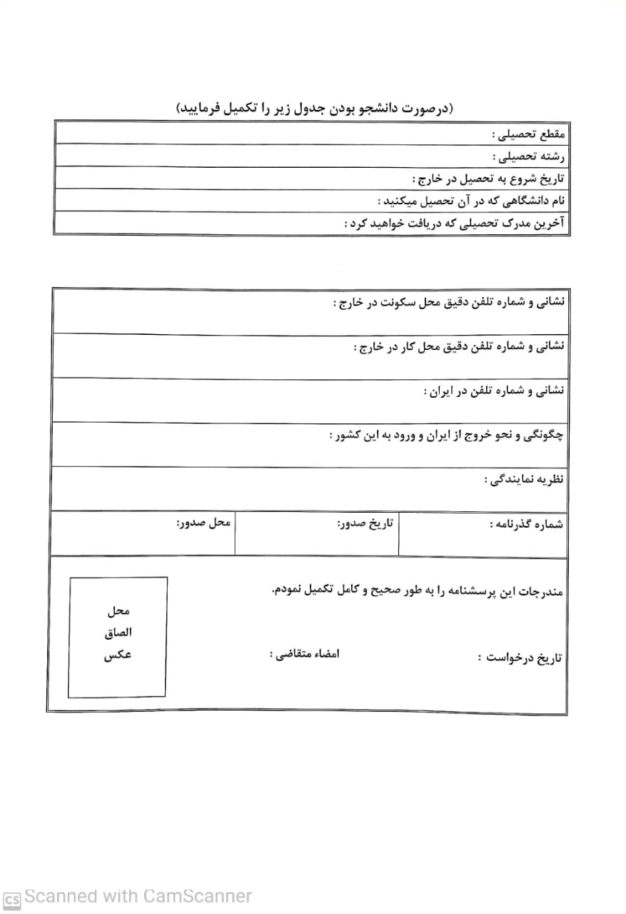 - در صورت درخواست متقاضی جهت "تغییر محل اقامت" مندرج در گذرنامه ، فرم مربوط به آن تکمیل گردد..